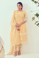 Embrace traditional Indian fashion with this stunning Pure Organdy Khadi Block Print Salwar Kameez with Fancy Embroidery Work. The top features beautiful embroidery and intricate lace detailing that oozes charm. Paired with a pure Mal cotton inner of solid colour that guarantees comfort. It's matched with a solid colour pure cotton bottom enriched with tasteful embroidery and lacework. A pure Kota checks khadi block print dupatta, accentuated with scallop embroidery and stylish latkan, completes the ensemble. It's a celebration of ethnic fashion.