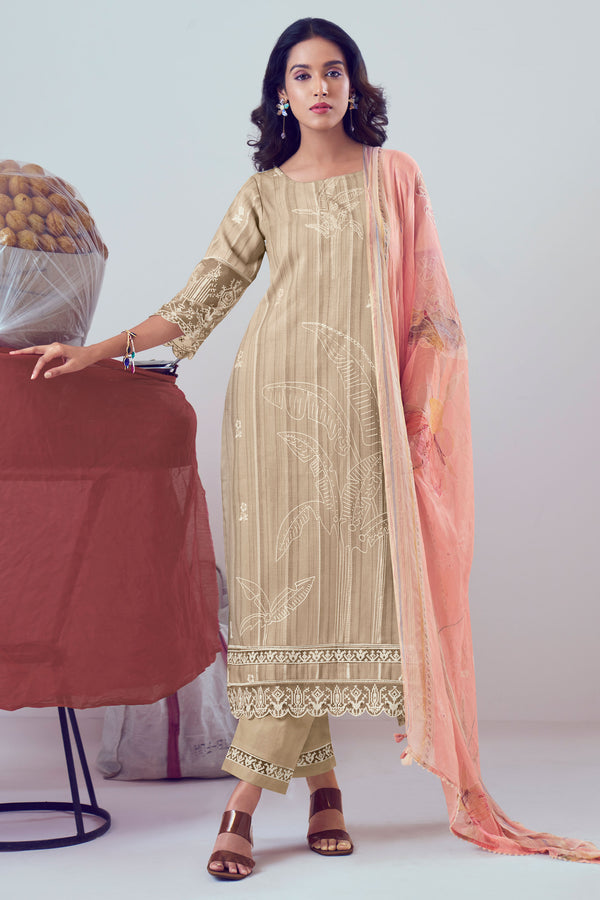 Indulge in the rich Indian craftsmanship with this Long Salwar Kameez crafted from pure south cotton. It boasts an exquisite khadi block print embellished with embroidery on damaan & Sleeves, The solid coloured bottom showcases embroidery Patti to augment its overall charm. Completing the set is a pure chiffon digital print with fancy lace work and hangings dupatta, giving the attire a truly traditional feel. Grab it now for a comfortable yet chic ethnic look.