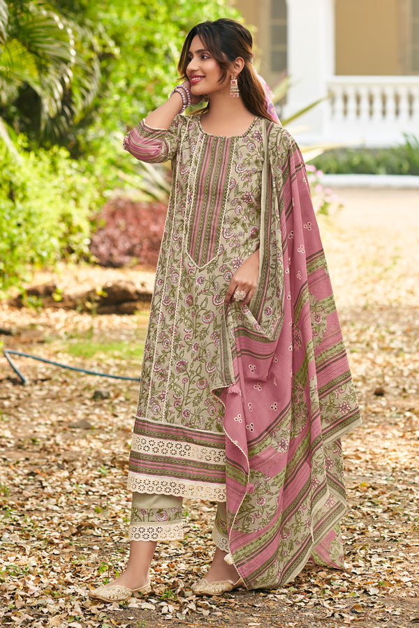 Introducing our Pure Cotton Hand Block Print Long Straight Cut Salwar Kameez, designed for elegance and comfort. The top boasts beautiful hand block prints enhanced with borer embroidery on the daaman, accented by delicate fancy lace work. The bottom features pure cotton fabric in a solid color, adorned with elegant embroidery and patti for a polished look. Completing the ensemble, the dupatta is made from pure Mal Mal cotton with a stunning digital print, detailed placement borer embroidery, and adorned with fancy lace and hangings. Perfect for both casual and festive occasions, this set brings traditional craftsmanship to your wardrobe.