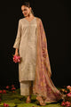Beige Tissue Jacquard With Elegant Hand Embroidered Straight Cut Salwar Suit
