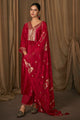 Bemberg Slub Sequence Embroidered Designer Dress In Red Color
