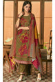 Experience luxurious elegance with this Pure Bemberg Silk Digital Print Daily Wear Salwar Suit. The set features a top graced with decorative Mukaish work and a mesmerizing embroidery pattern on Daaman and sleeves. It comes with a pure Moga silk bottom flaunting an exquisite embroidery Patti, offering the utmost comfort. The attire is complete with a pure Muslin Digital Print Dupatta enhanced with readymade lace and decorative Latkans, perfect for any casual or festive event.