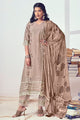 Brown Pure Linin Digital Print Salwar Suit