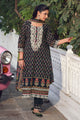Cotton Hand Block Print Casual Salwar Kameez In Black Color