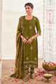 Green Pure Bemberg Slub Silk Embroidered Designer Straight Cut Long Dress