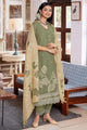 Green Pure South Cotton Dyed Jacquard Straight Cut Salwar Suit
