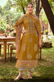 Mustard Pure Tissue Hand Batik Print With Hand Work Dress