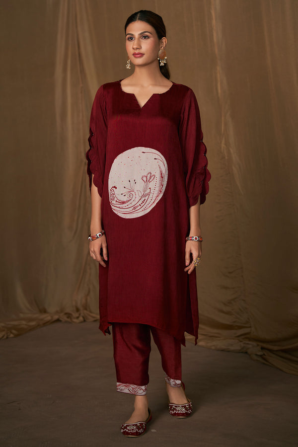 Pure Bemberg Slub Digital Print Readymade Top With Bottom