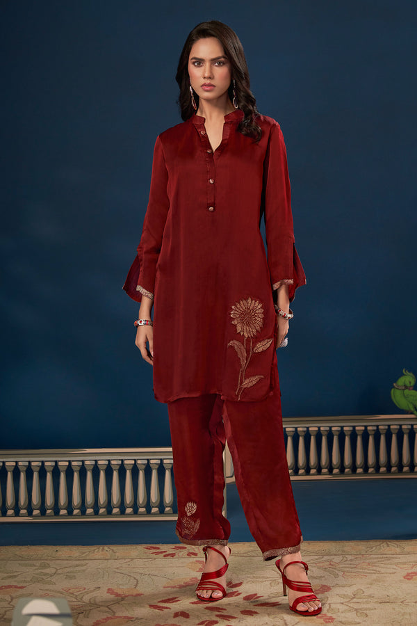 Elevate your style with this fully stitched ensemble crafted from luxurious pure modal satin fabric. The top features detailed jacquard patchwork, adding a rich texture and unique charm to the design. Paired with premium modal satin bottoms showcasing equally stunning jacquard patchwork, this outfit provides an elegant yet comfortable look for any occasion. Available in sizes L and XL, it is tailored to ensure a flattering fit and effortless sophistication. Perfect for formal gatherings, casual outings, or any special moment.