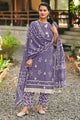 Purple Color Pure Cotton Embroidery Hand Block Print Straight Cut Suit