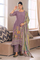 Purple Pure Mal Jacquard Brush Paint With Embroidered Designer Suit