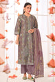 Purple Pure Shimmer Jacquard Silk Digital Print Straight Cut Dress