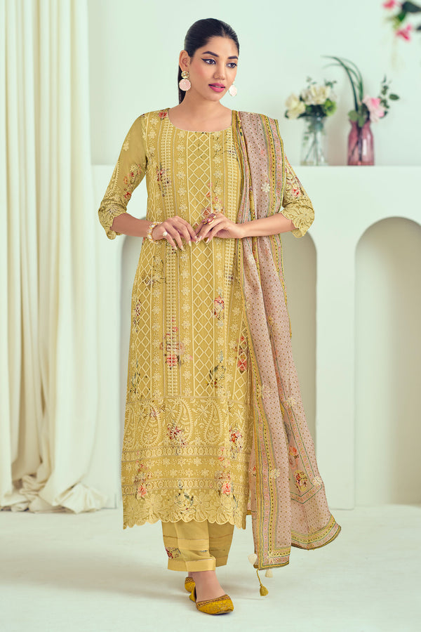 Yellow Pure Bemberg Georgette With Heavy Lucknow Embroidery Work Suit