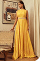 Yellow Russian High Collar Haevy Work Incut Gown With Belt